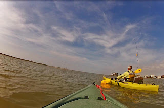 Friday saw more fish being caught in the morning including but nothing noteworthy other than some additional black drum. Friday afternoon came quickly and we wanted to get the kayaks wet. We found what we thought would be an out of the wind spot on the far west side of the island and launched. 20 yards into the bay we felt the wind pushing us every direction. Anchors wouldn't hold so we paddled a bit, fished very little and after an hour we could see our newly initiated kayaking brother was wearing out. We all headed in with smiles and high fives though the wind was still beastly.