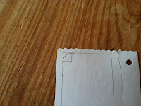 2 . Place your gauge on the card stock making sure that you have enough room between the edges of the material and the spacing you will need for the size circle you will be making.