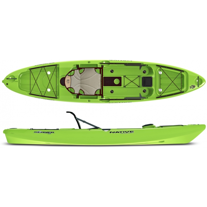 What if we could change the balance point from your ankles? You can! The problem with kayaks is in most circumstances as they get wider, they get slower and more sluggish to paddle (the obvious exceptions are pedal and motorized kayaks). This is where hybrid kayaks come in. The Commander from Wilderness Systems and the Ultimate from Native are hybrid kayaks that are part sit in and part sit on. They look more like a canoe than a kayak to some (though the hull design is different). When you stand in one of these kayaks you have a sidewall to brace your leg against. This raises the balance point from your ankle to almost your knee. It's almost as if you've made yourself shorter. The amount of body you now have to balance is lessened and the 31" wide Commander offers more stability to most people than a 33" wide sit on top. Not only that but it generally paddles faster as well in the longer models.